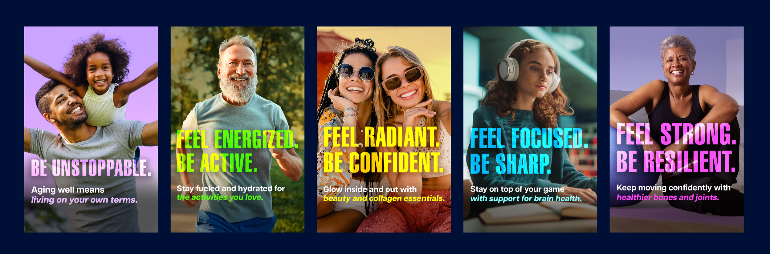 Nestlé approached my team to develop a concept idea to be displayed in Walgreens for their line of vitamins supporting Healthy Aging, with an emphasis on inclusivity across all age groups. Collaborating closely with our copywriters, my creative team and I crafted a concept centered on proactive healthy aging—the idea that aging well is for everyone, not just older adults. I was responsible for designing the visual direction, focusing on themes of energy, empowerment, and vitality. The visuals capture the feeling of confidently stepping into your power, celebrating the everyday moments and activities that make life vibrant at any age.