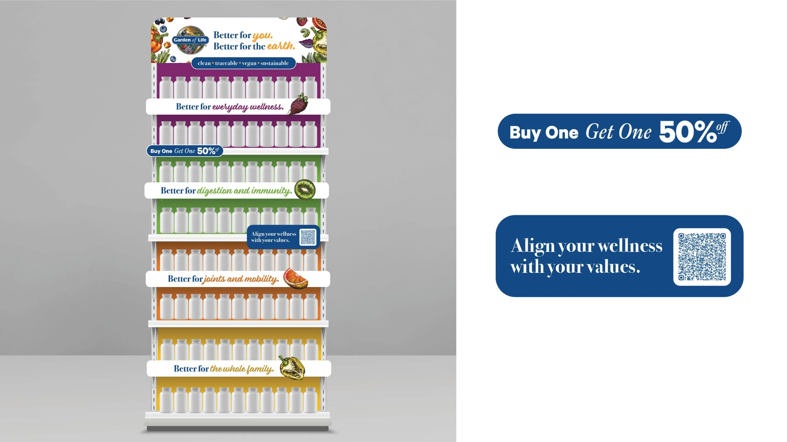 I designed print, shelving, and email assets for Garden of Life Vitamins using the concept “Better for you. Better for the earth.” The campaign underscores the brand’s use of natural ingredients and its commitment to both personal and planetary wellness.